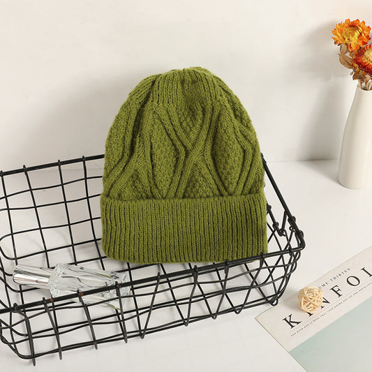 Retro three-dimensional rhombus pattern knitted hat