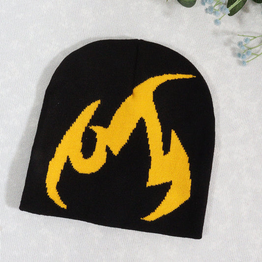 Knitted pullover flame pattern Y2K jacquard men's and women's hat