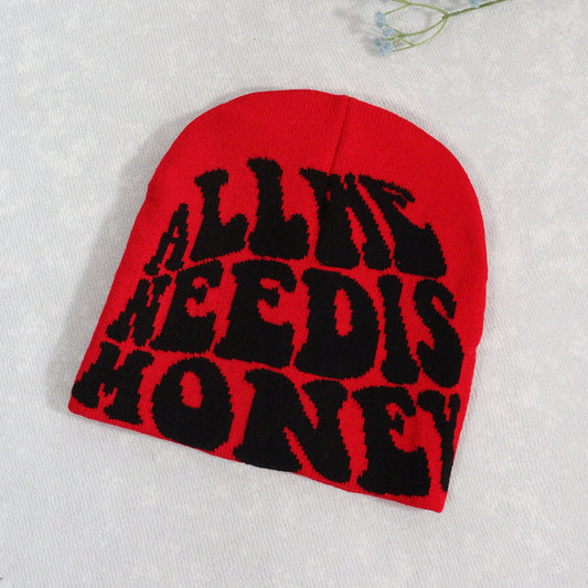 Knitted Hat Trendy Autumn and Winter Letter Beanie Hat