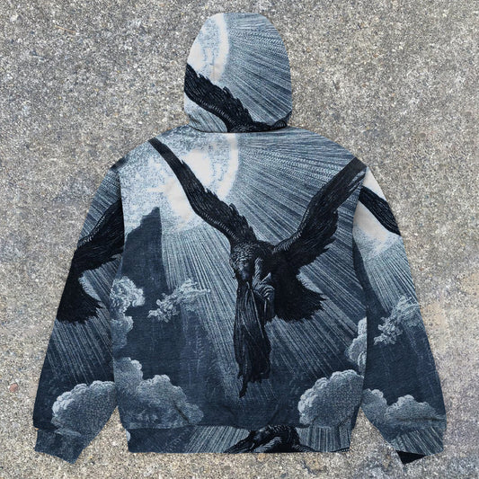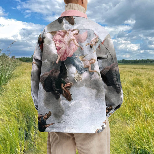Retro Angel Print Contrasting Fashion Coat Jacket