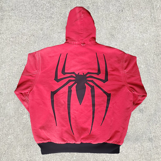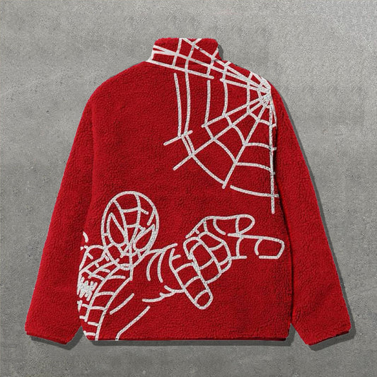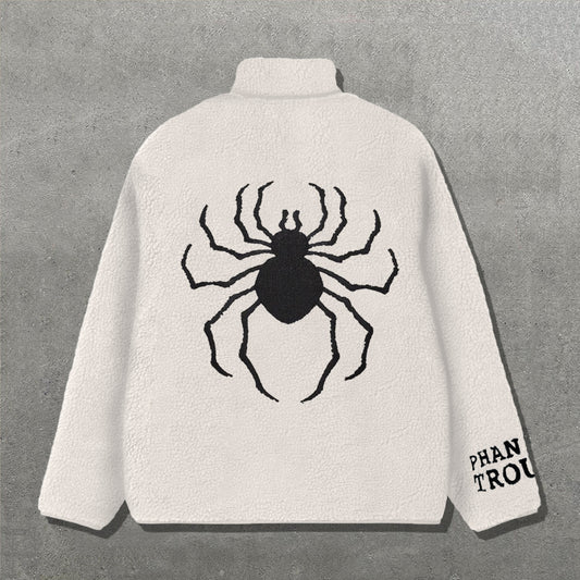 Spider Print Long Sleeve Zipper Pocket Plush Coat