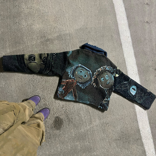 Anime Figure Print Long Sleeve Zipper Pocket Plush Coat