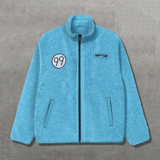 Fashion Anime Symbol Print Long Sleeve Zipper Pocket Plush Coat