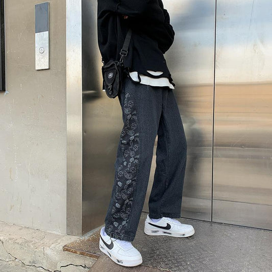 Denim trousers loose straight-leg street casual pants