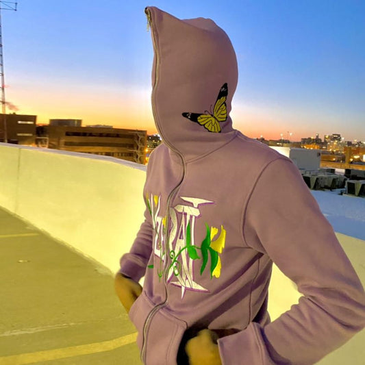 Street style personalized butterfly print zipper cardigan sweatshirt for men and women