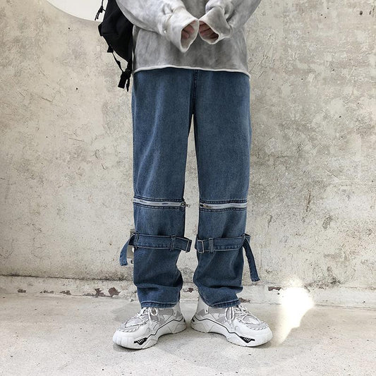Personality hip-hop detachable wide-leg loose straight-leg casual daddy pants denim trousers men