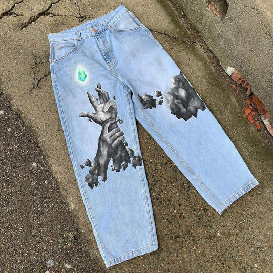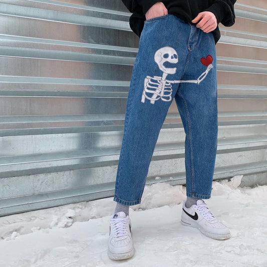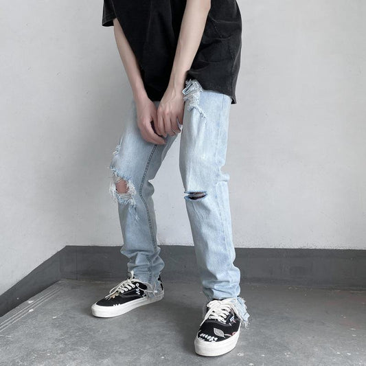 High street trend raw edge ripped jeans male ins tide thin section thin denim trousers