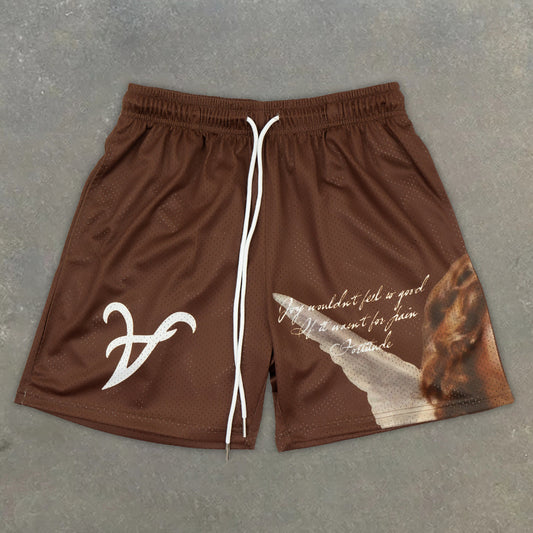 Praying Hands & Letters Print Mesh Shorts