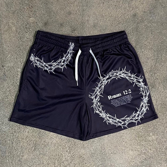 Praying Hands & Cross Print Mesh Shorts