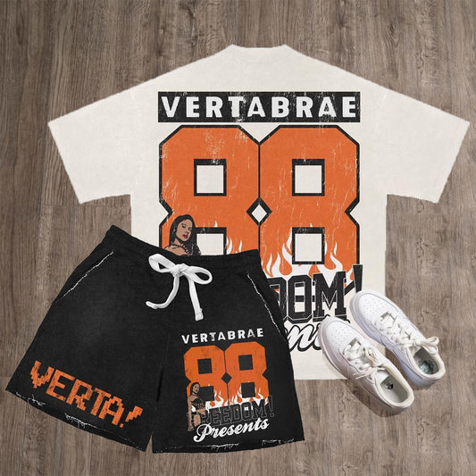 Casual personality preppy letter print T-shirt shorts suit