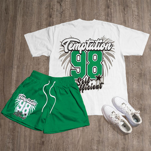 MoneyTemptation Print T-Shirt Mesh Shorts Two-Piece Set