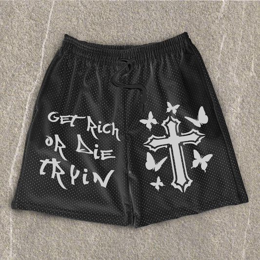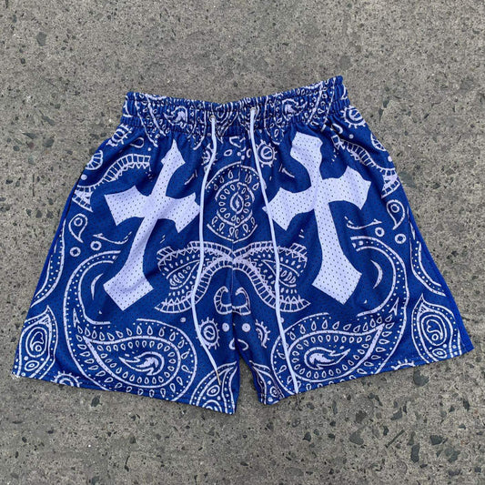 Personalized Flame Pentagram Print Mesh Pocket Shorts