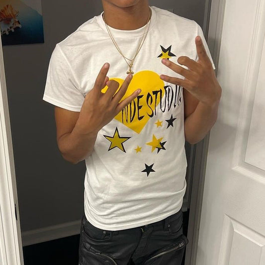 Casual Heart & Pentagram Print Short Sleeve T-Shirt