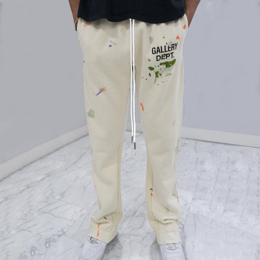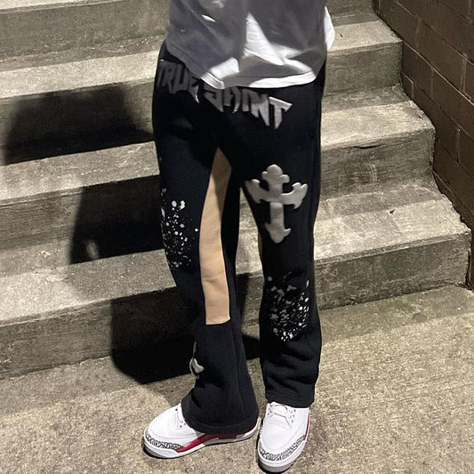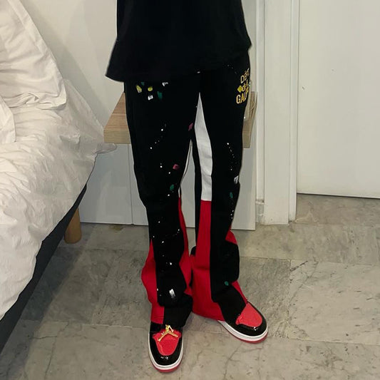 Letter Paint Splatter Print Drawstring Flared Trousers