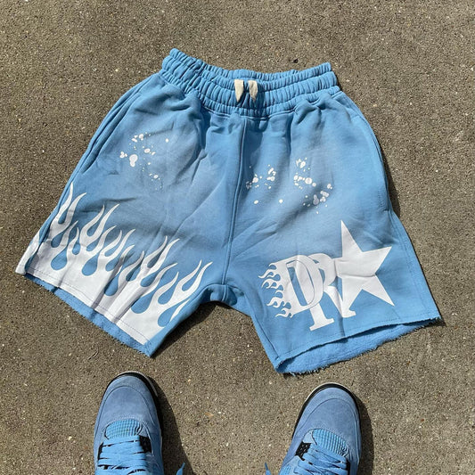 Flame Print Drawstring Pocket Shorts
