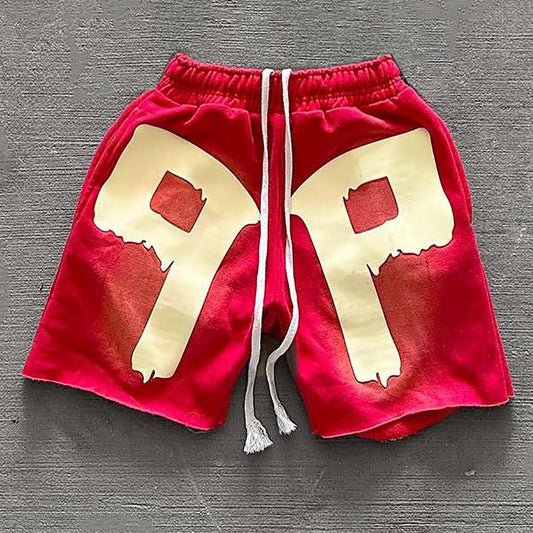 Letters P Print Drawstring Pocket Shorts