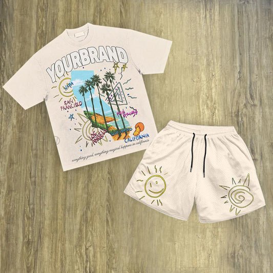 Sunset Print T-Shirt Short Sleeve Two Piece Set