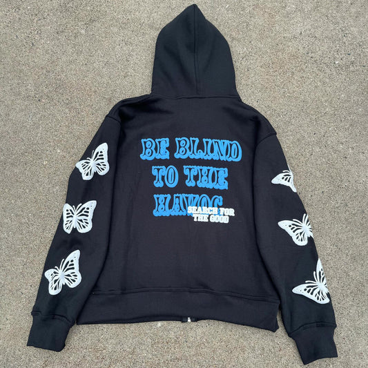 Blind Havoc Butterfly Print Long Sleeve Zipper Hoodies