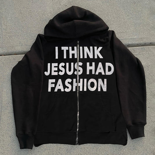 I Think Jesus Had Fashion Print Long Sleeve Zipper Hoodies