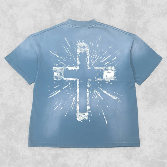 Cross Washed Distressed Short Sleeve T-Shirt