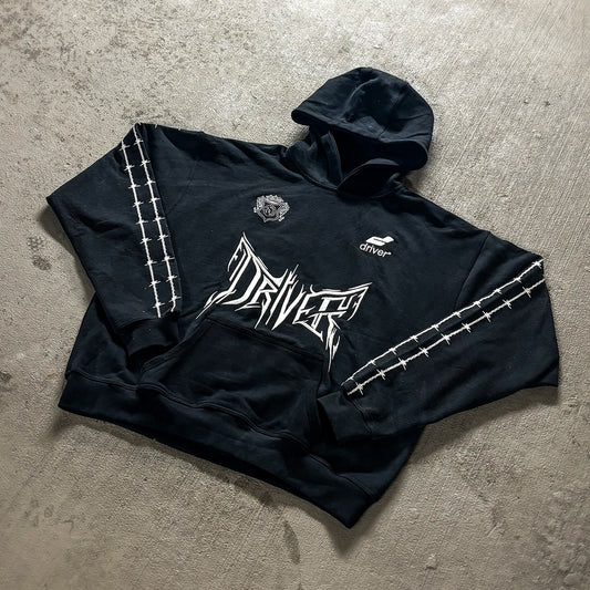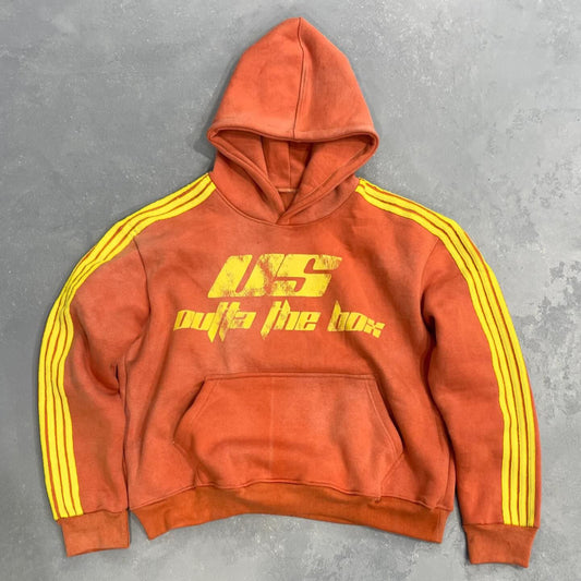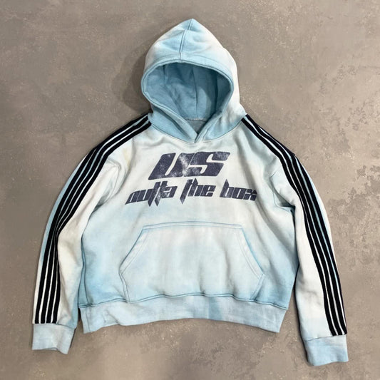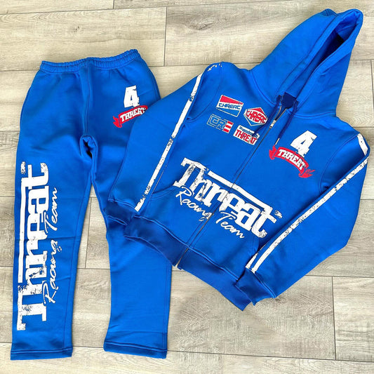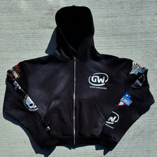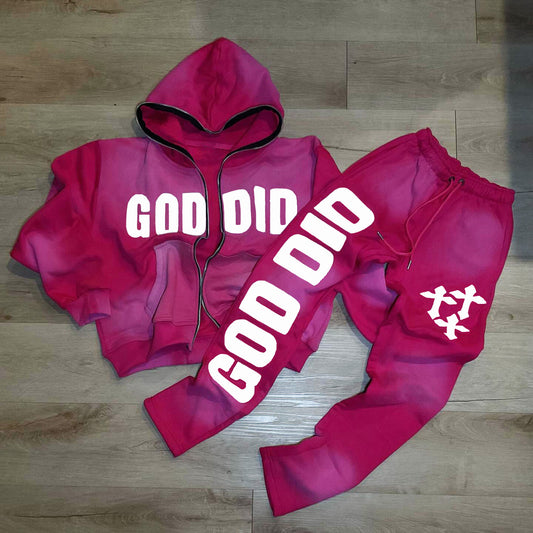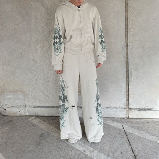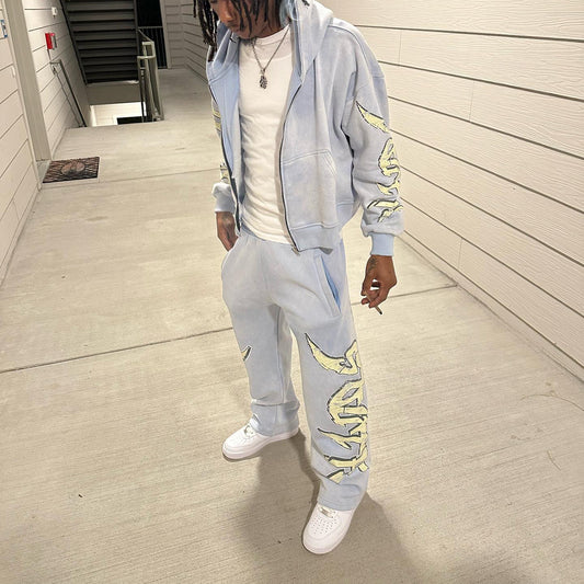Street Pattern Print Zipper Long Sleeve Ripped Hoodie Set