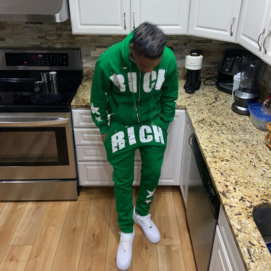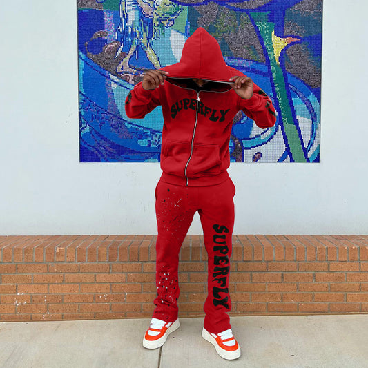 Stylish Casual Letter Pattern Zip Hoodie Set