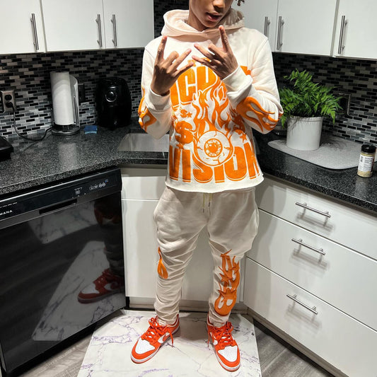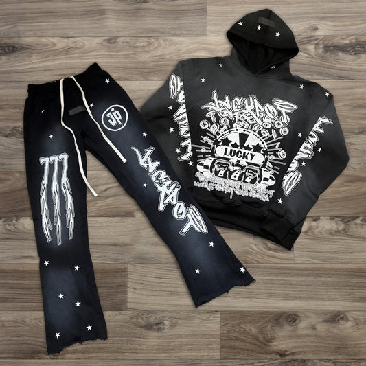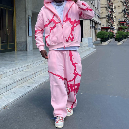 Casual Full Zip Hoodie Sweatpants Print Two Piece Set