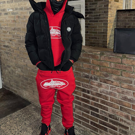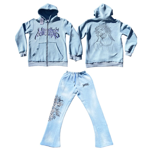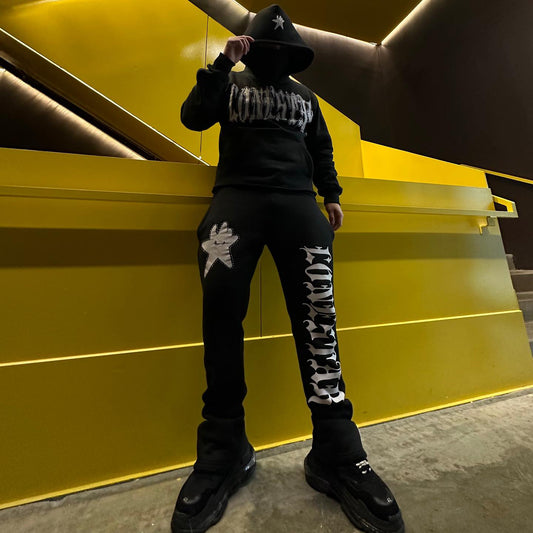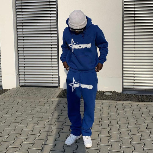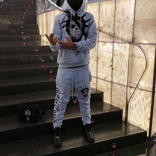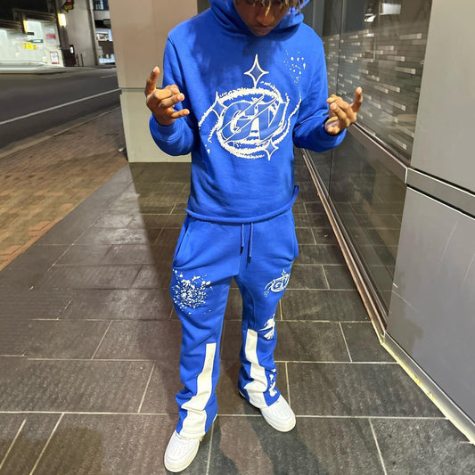 Casual Street Wash Sports Micro Flared Trousers Hoodie Two-Piece Suit