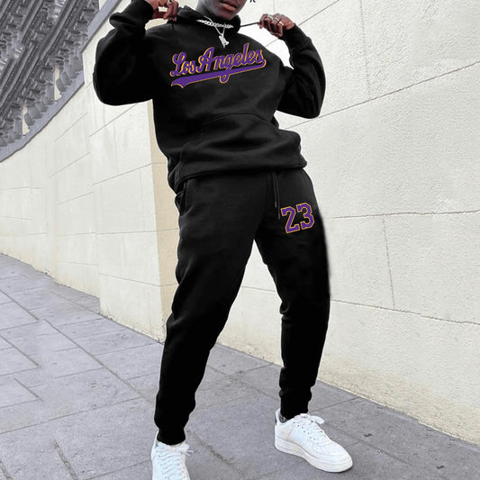 Casual Los Angeles Print Hoodie And Pants Two Piece Set