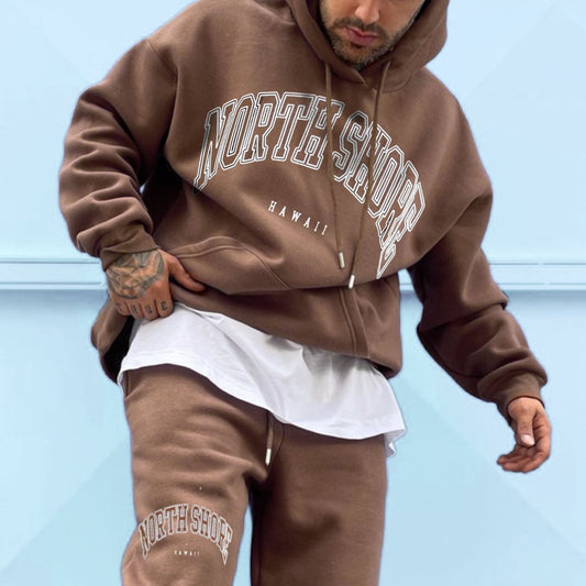Casual North Shore Print Hoodie And Pants Two Piece Set
