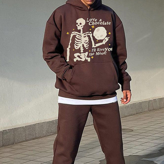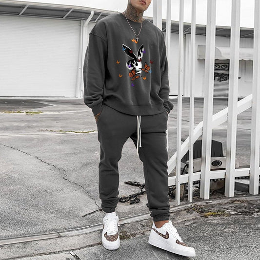 Casual trendy design printed long-sleeved hoodie trousers suit