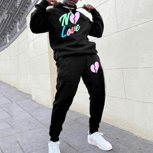 Casual No Love Print Hoodie And Pants Two Piece Set