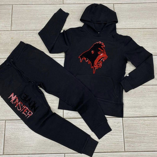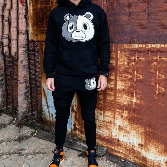 Bear pattern hooded sweatshirt and pants set