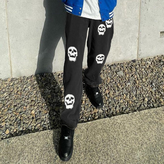 Retro Skull Print Hip Hop Street Trousers Jeans