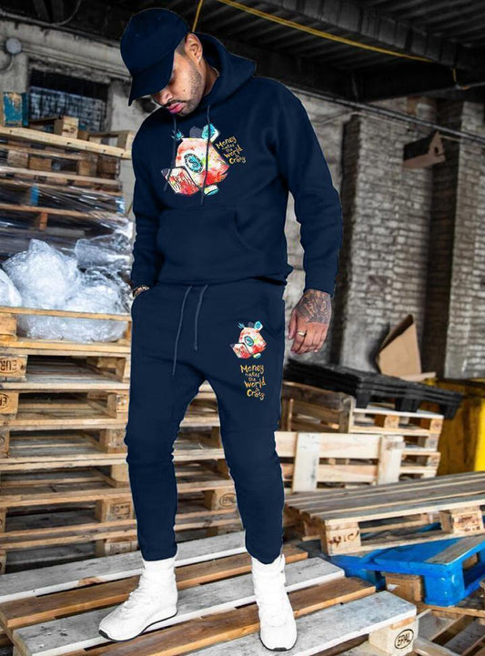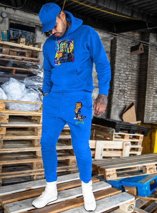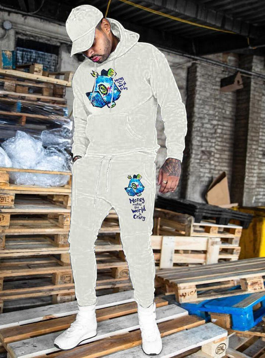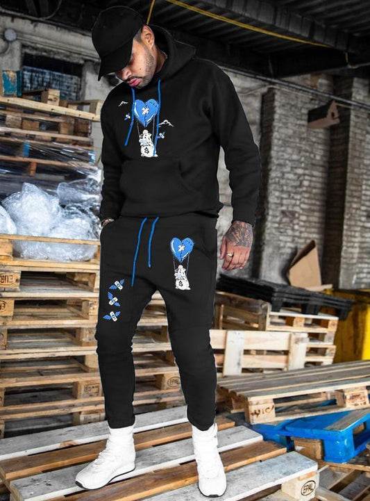 Hip-hop fashion printed hoodie sweatpants suit