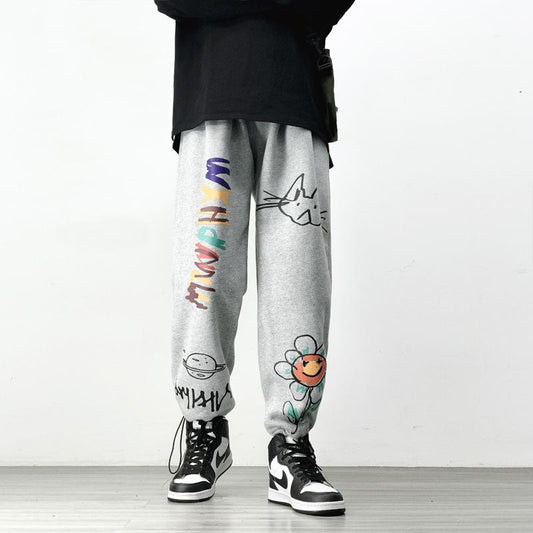 Street style fun print trendy loose casual trousers