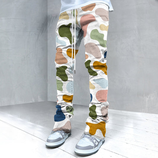 Graffiti Contrast Color Retro Pile Pants Street Trousers