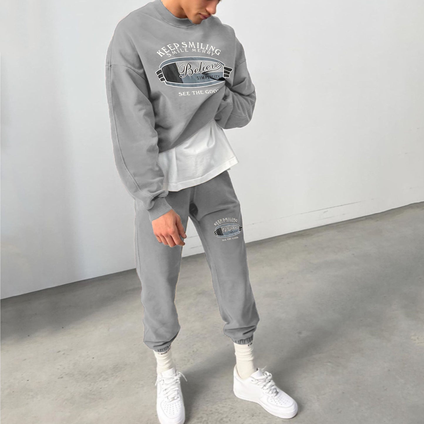 Casual Keep Smiling Print Sweatshirt And Pants Two Piece Set