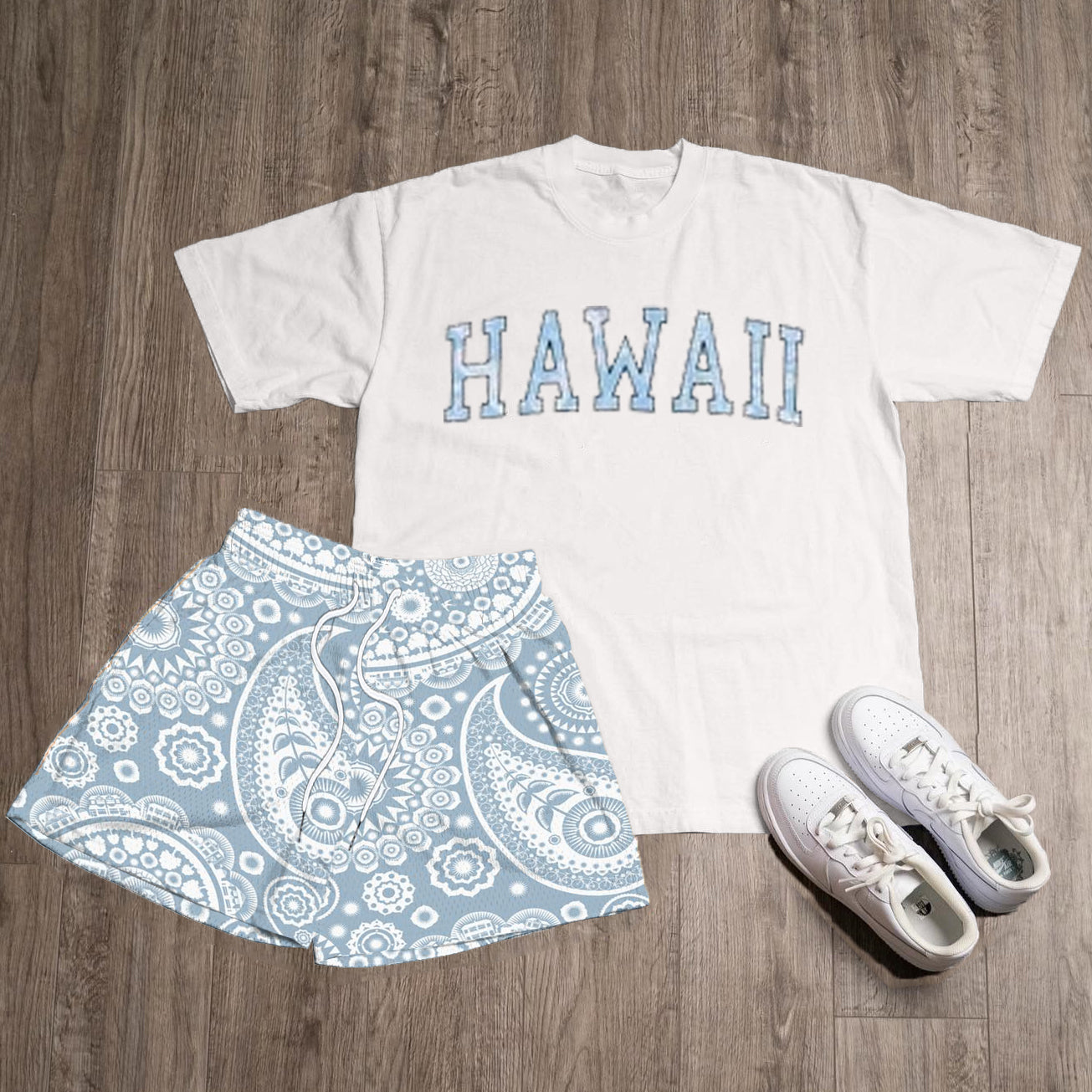 Hawall Print T-Shirt Shorts Two-Piece Set
