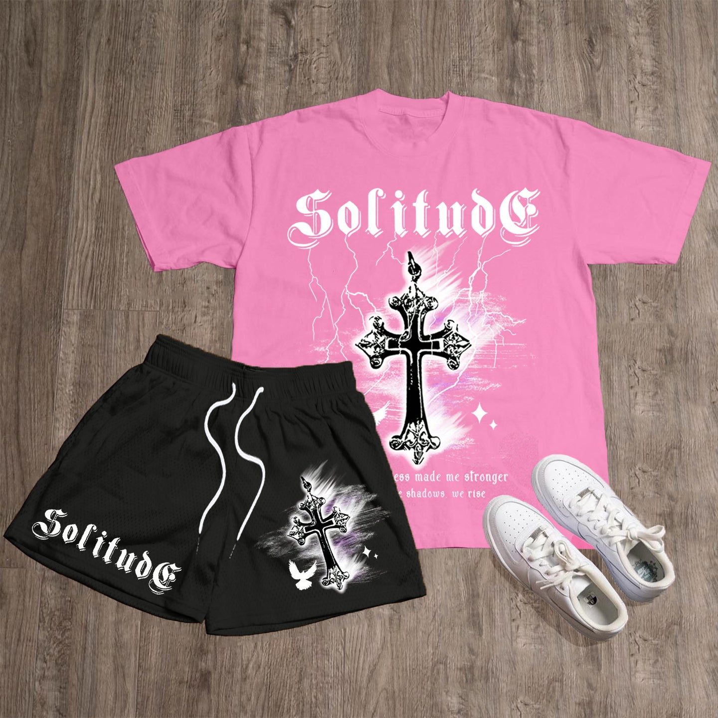 Solitude Print T-Shirt Mesh Shorts Two-Piece Set
