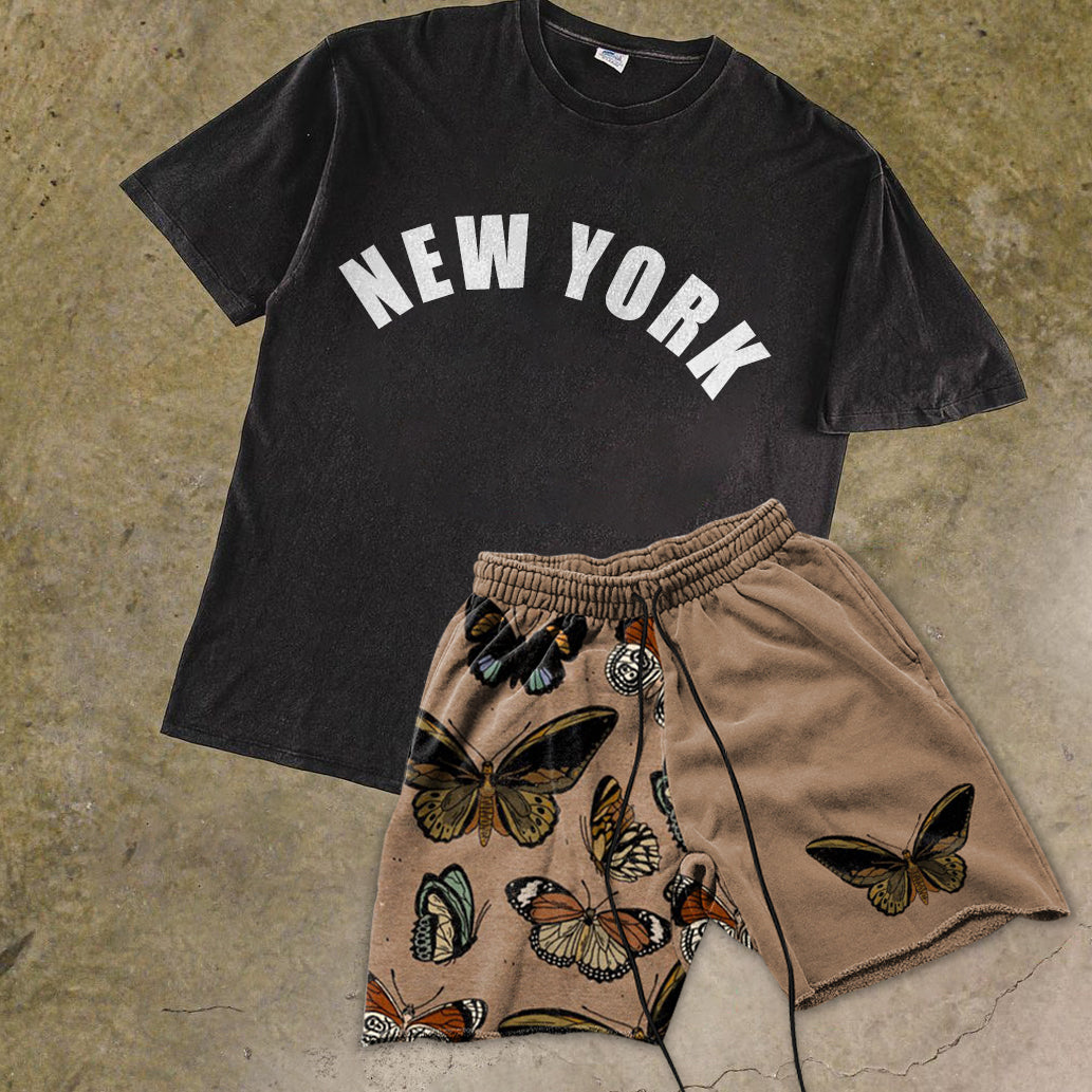 Vintage New York Graphic T-Shirt Butterfly Shorts Set